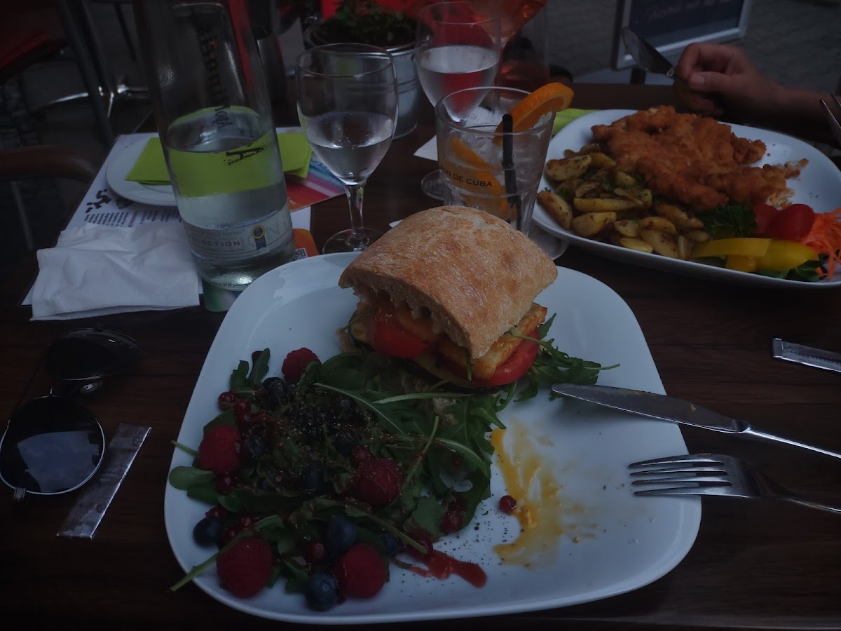 The menu at Pm Lounge features a blend of traditional German cuisine and modern flavors, with each dish expertly prepared to satisfy any palate. One of the standout options is the Hallumi-Burger mit Beeren-Salat, a delightful combination of crispy halloumi and a fresh berry salad that perfectly balances savory and sweet. For those who love hearty meals, the Schweineschnitzel Wiener Art mit Spiegelei is a must-try. This classic German dish comes with a crispy breaded pork schnitzel, topped with a fried egg, making it an indulgent and filling choice.