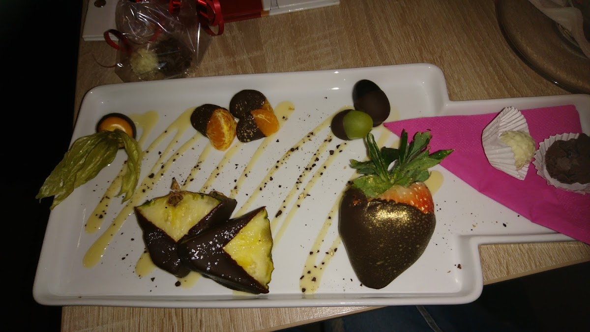 Pm Lounge also caters to sweet tooths with their Schokofrüchte und Trüffel, a decadent dessert featuring chocolate-covered fruits and truffles. If you’re in the mood for something refreshing and light, the Crepes gefüllt mit Erdbeeren und Minze dazu Vanilleeis is the perfect treat. The crepes, filled with strawberries and mint, paired with creamy vanilla ice cream, make for a delightful end to any meal.